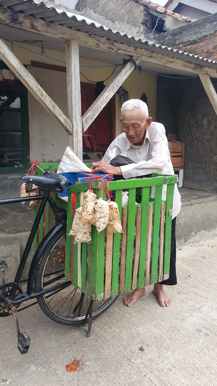 Abah Kardi telah berjualan kerupuk keliling menggunakan sepeda selama empat tahun. Setiap hari, beliau hanya mendapatkan penghasilan bersih sekitar 20 ribu rupiah. Ekonomi keluarganya sangat sulit, terutama karena beliau juga harus merawat kakaknya yang sangat tua dan anaknya yang sakit serta tidak bisa bekerja.