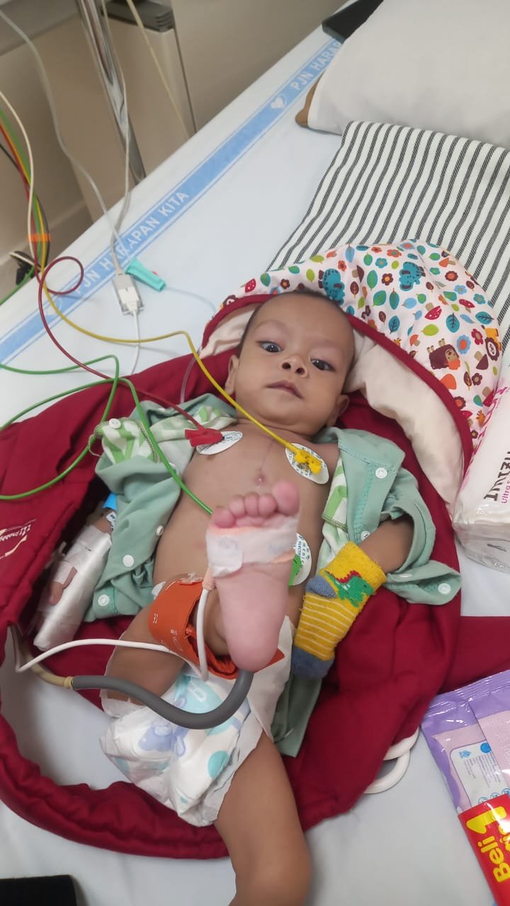 Vikal sekarang udah sembilan bulan, tapi kondisinya sangat mengkhawatirkan. Rangkaian operasi sudah dijalani, tapi tidaklah sebentar melihat kondisinya yang terus menurun. Sekarang, tubuhnya pun mulai membiru.