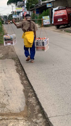 Setiap pagi, Abah Emen memulai harinya dengan mendorong dan mengangkut tabung gas keliling. Di usia 76 tahun, ia berjalan dari titik ke titik membawa beban hingga 30 kilogram di tubuh renta yang sering sakit. Dari pukul 08.00 sampai 17.00, Abah berkeliling menawarkan gas, berharap ada yang membeli—meski tak jarang ia pulang tanpa hasil sama sekali.