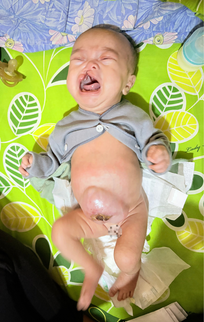 Hati orangtua mana yang tak hancur ketika mendapati sang anak by.Siti (3 bulan) mengidap Usus diluar perut dan bibir sumbing yang diketahui saat akan melahirkan. Usus by.Siti terburai dan harus mendapat penanganan segera,tapi dengan keterbatasan biaya by.siti hanya bisa ditangani oleh dokter dengan sedikit memasukan usus nya di dinding perut,bahkan bibir sumbing nya belum mendapat penanganan sama sekali.