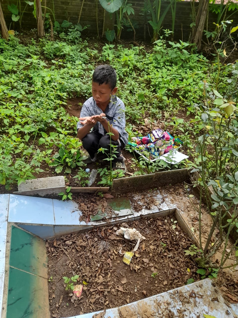 Tangisannya terus terdengar sambil memeluk ibu tercinta yang terus menerus muntah darah.Tak berselang beberapa lama ibunya meninggal dunia karena pembuluh darah pecah.