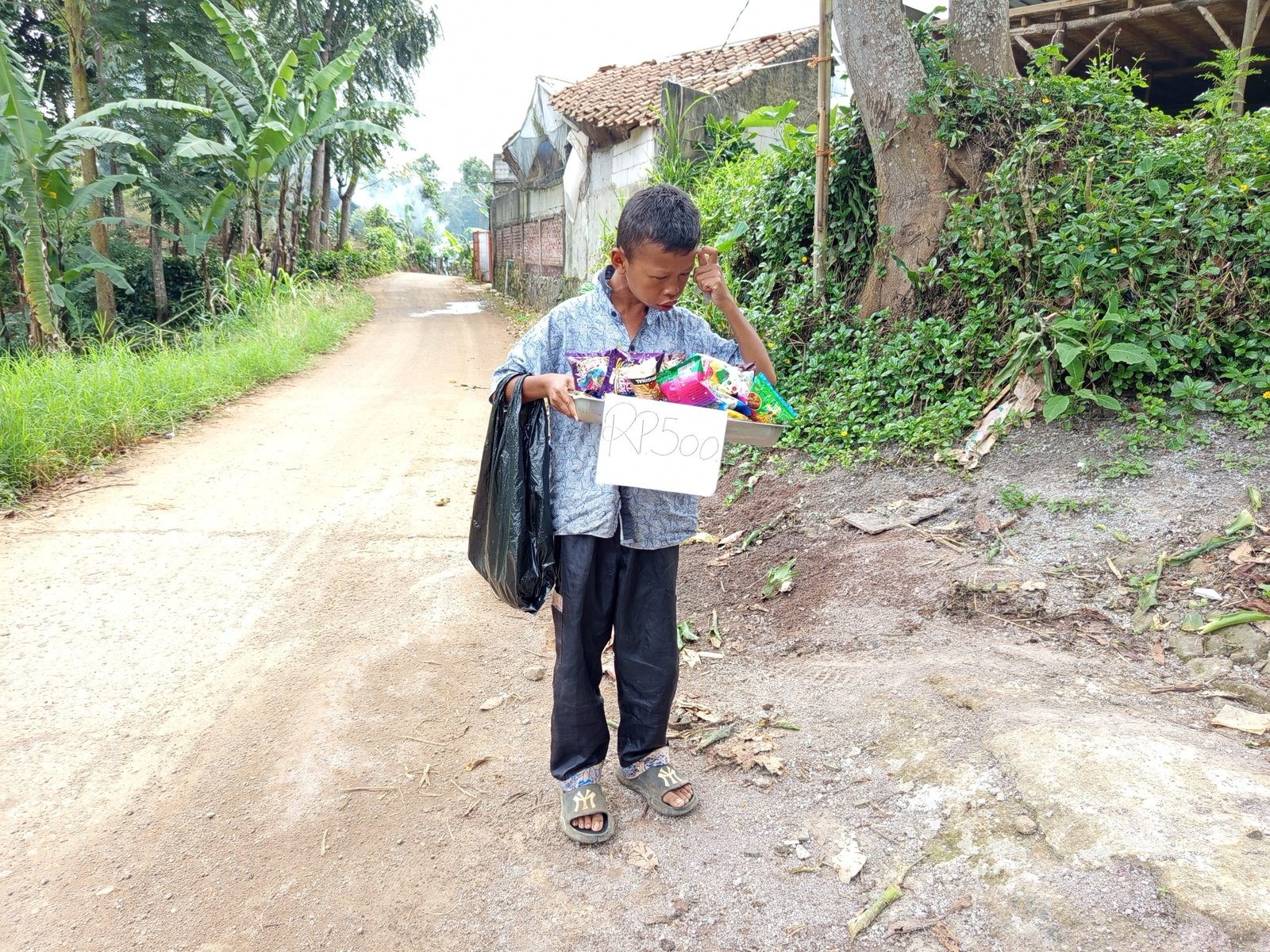 Walaupun tubuhnya lelah dengan menahan rasa sakit di kaki tiada tara. Ia terus berjalan menjajakan dagangannya , bahkan sampai ketiduran. Dan sering kali ia pun menghabiskan waktunya sambil keliling jajakan dagangan dengan mampir ke makam ibunya hanya sekedar untuk melepas rindu.