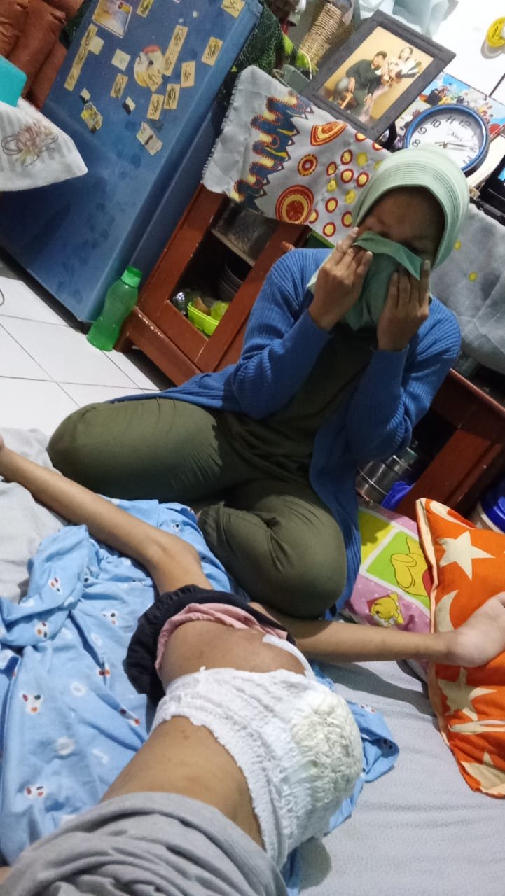 Karena terlalu lama berbaring dan posisi tidak berpindah-pindah, akhirnya disebelah tulang ekornya berlubang dan terus mengeluarkan darah.